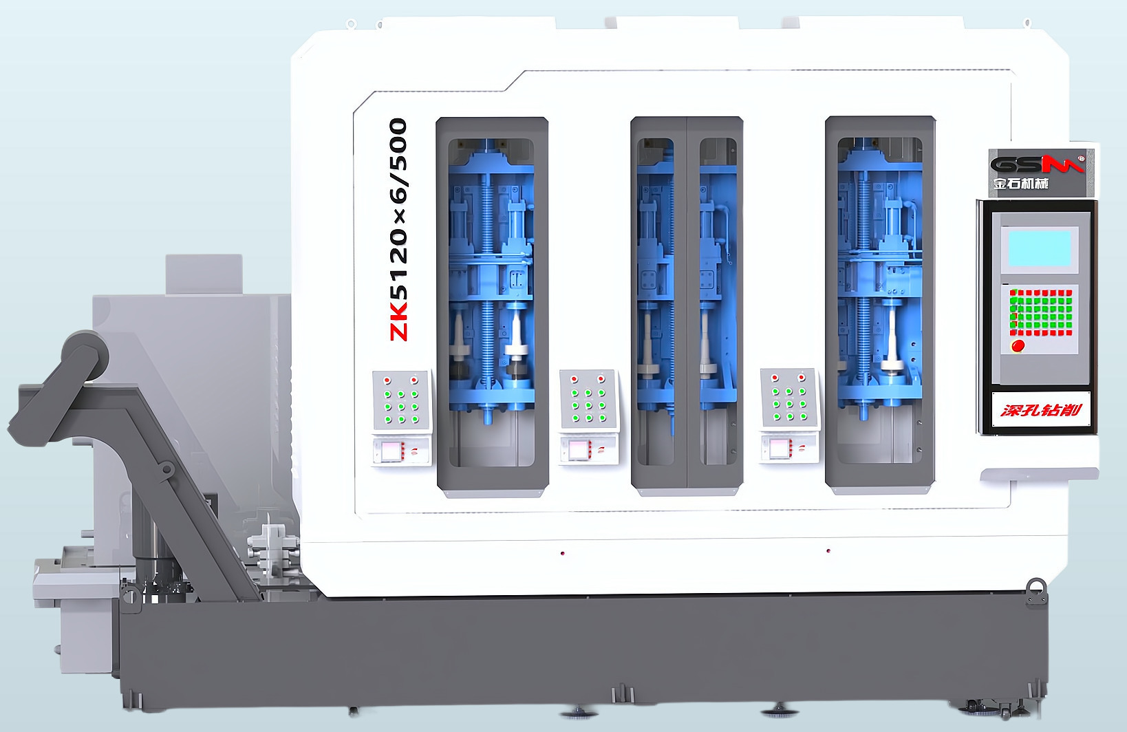 簡(jiǎn)要說(shuō)明:倒立式布局設(shè)計(jì)。槍鉆在下,工件在上,從下向上鉆削加工。排屑順暢,占地面積小。根據(jù)主軸軸數(shù)的不同,機(jī)床分為獨(dú)立的多個(gè)加工單元。各加工單元可單獨(dú)或同時(shí)運(yùn)動(dòng),互不干涉。