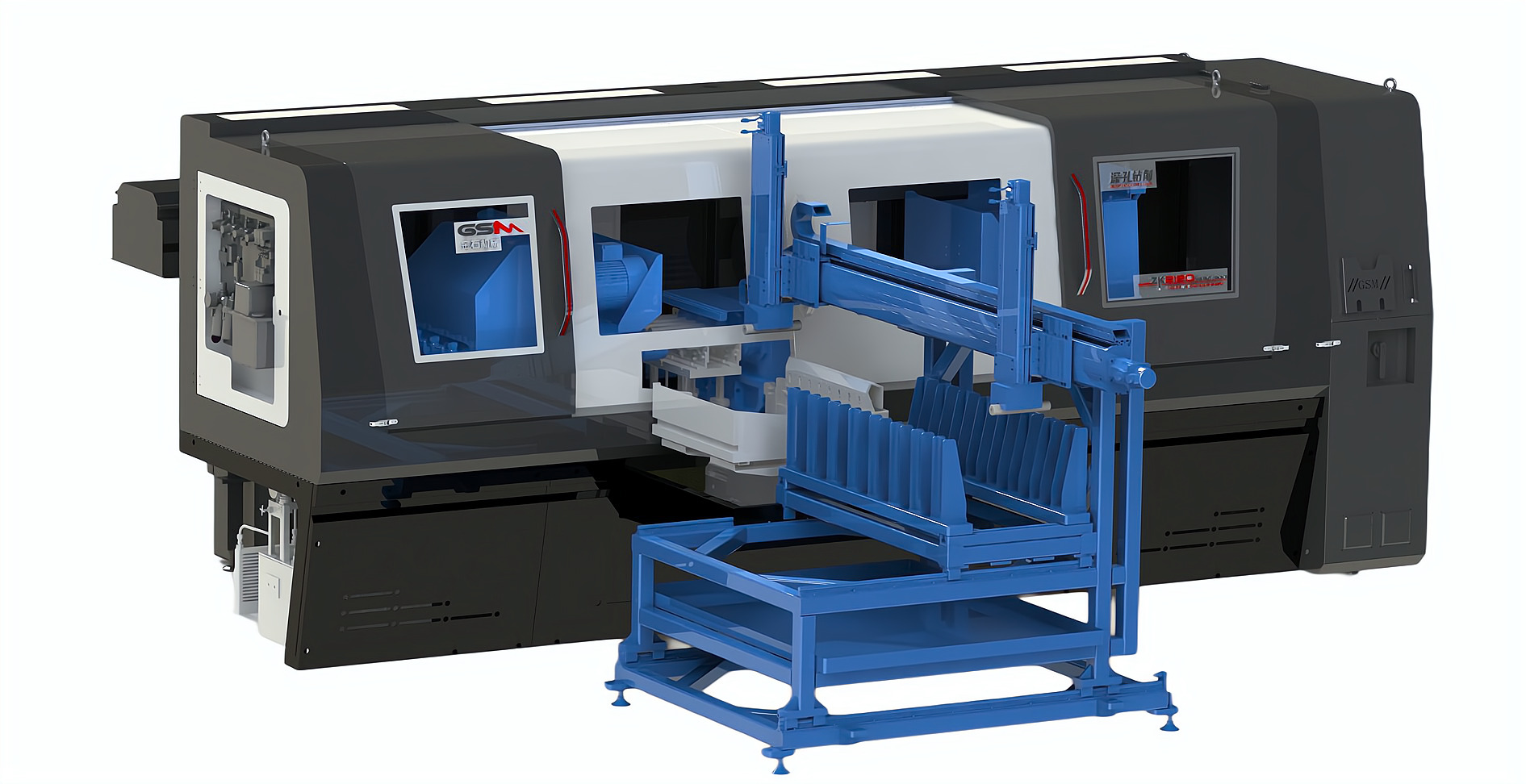 ZK2120×4B/500A 深孔鉆床配置桁架機(jī)械手,加工新能源電機(jī)軸,單機(jī)自動(dòng)化