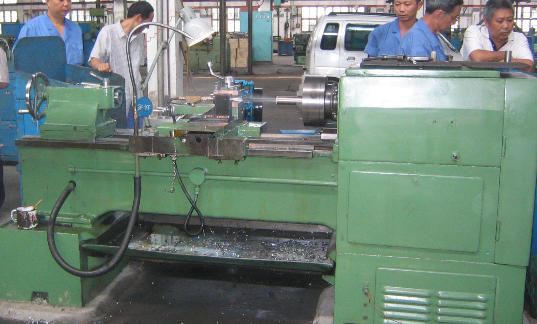 開啟機床,待機床主軸旋轉(zhuǎn)穩(wěn)定后,打開自動走刀進(jìn)入切削狀態(tài),鐵屑連續(xù)飛出。