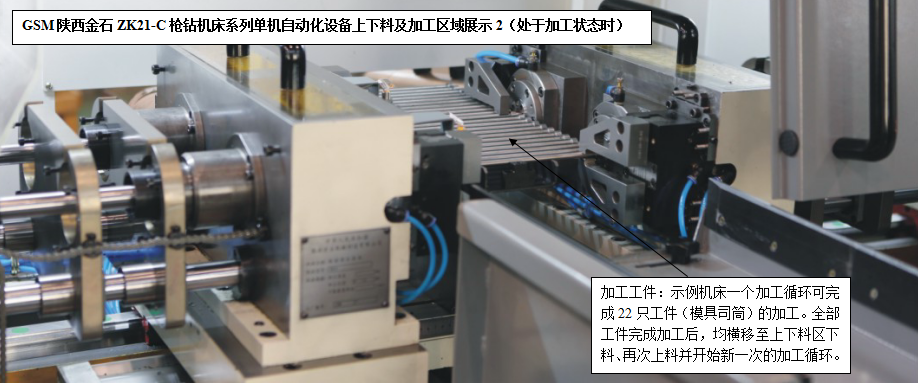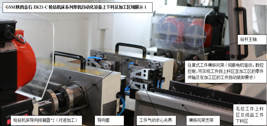針對槍鉆加工領(lǐng)域特點和不同用戶的設(shè)備需求,陜西金石設(shè)計生產(chǎn)研發(fā)的ZK21-C槍鉆機床系列單機自動化產(chǎn)品(人工低強度參與的上下料、自動裝卸、自動加工),可以使得用戶在應(yīng)對大批量軸類零件的精密深孔加工場合擁有了更多更好的選擇。