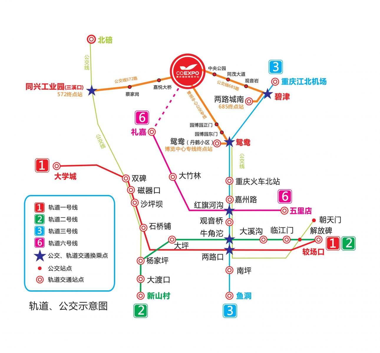 重慶火車站(菜園壩)或重慶火車北站(龍頭寺)至重慶國際博覽中心